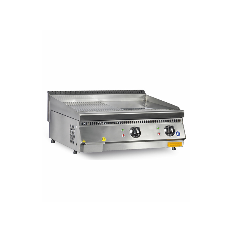 • قرل كهربائي يتميز بنصف سطح أملس ونصف سطح مجرح ويوفر هذا التصميم مرونة في الطهي، مما يجعله مثالياً لتحضير مجموعة متنوعة من الأطعمة في المطابخ التجارية والمنزلية على حد سواء.