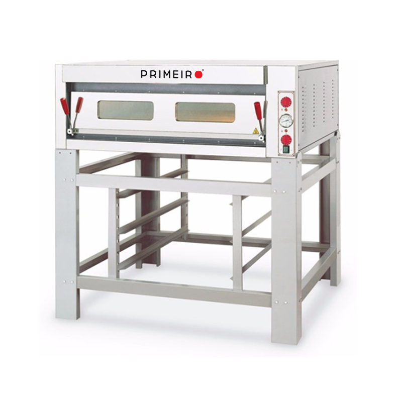 Stainless steel or rustic version. Cooking chamber in aluminium coated steel plate. Refractory baking floor. Counter-balanced opening door.